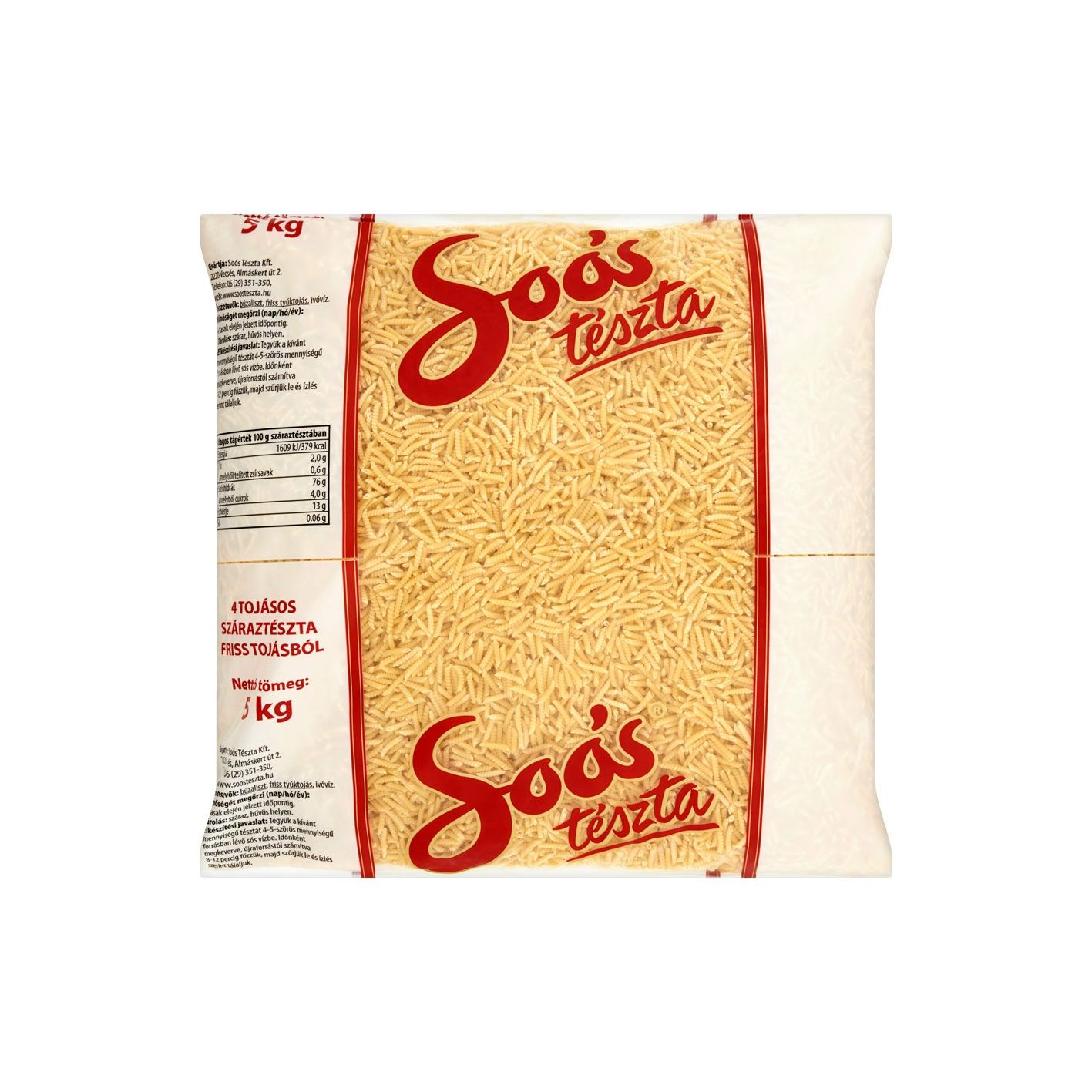 Soós Tészta Kft. 2220 Vecsés Almáskert út 2. Telefon: 06 (29) 351-350 web: www.soosteszta.hu