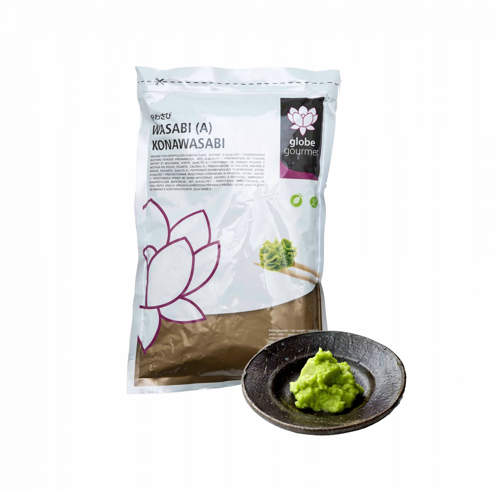 tormapor (88%), mustárpor (10%), kukoricakeményítő, wasabi (0,1%), sav: E 330, antioxidáns: E 300, színezékek: E 102, E 133 .