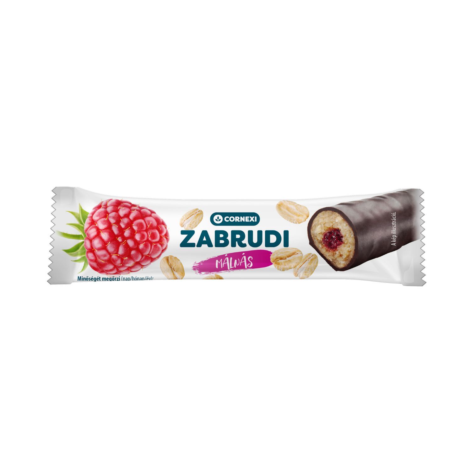 Zabpehely 34%, kakaós bevonómassza 17% [cukor, teljes mértékben hidrogénezett növényi zsír (pálmamag), zsírszegény kakaópor 15%, emulgeálószerek: lecitinek, poliglicerin-poliricinoleát; aroma], málnás töltelék 14% [cukor, fruktóz-glükózszörp, alma püré, málna püré 12%, zselésítőanyag: pektinek; étkezési sav: citromsav; feketerépalé koncentrátum, aroma, tartósítószer: kálium-szorbát], glükózszirup, fruktóz-glükózszörp, növényi zsír (pálma), sűrítőanyag: gumiarábikum; zabpehelyliszt, nedvesítőszer: glicerin; maltodextrin, emulgeálószer: lecitinek (szója); aromák, étkezési só, étkezesi sav: citromsav; tartósítószer: kálium-szorbát.