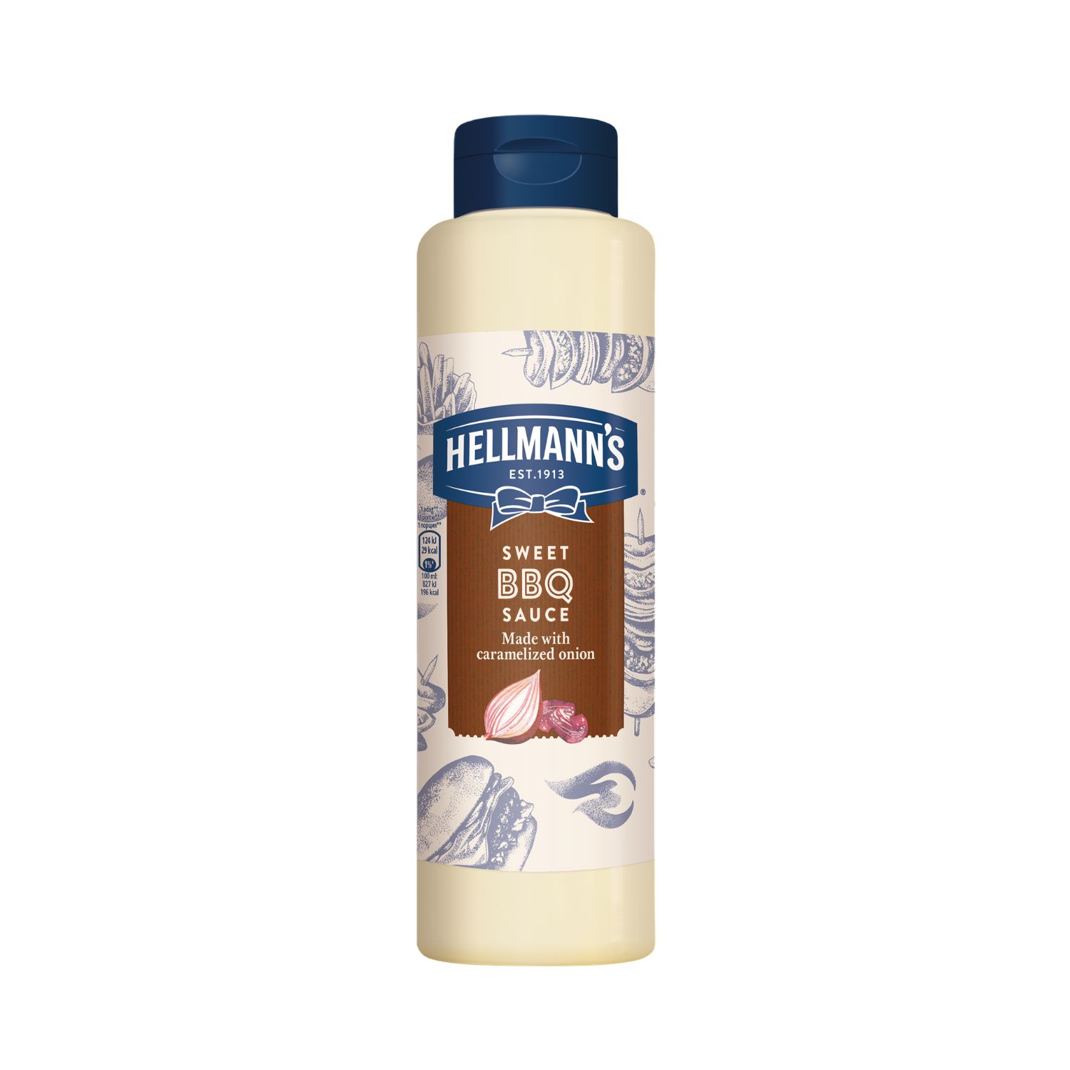 Cukor, sűrített paradicsom, víz, karamellizált hagyma, piros paprika, ecet, uborka, só, módosított kukoricakeményítő, citromlé koncentrátum, mangó püré koncentrátu, fűszerek, savanyúságot szabályzó anyag, füstaroma, tartósítószer.